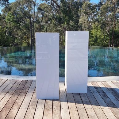 We have white & clear square cake plinths and rippled finish round cake plinths.
