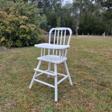 Our vintage white high chair pairs well with a backdrop and balloon package