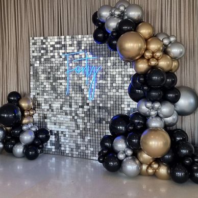 2m x 2m Satin silver shimmer wall is the perfect option to add some glitz to your event space